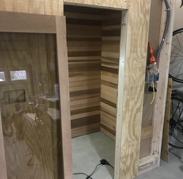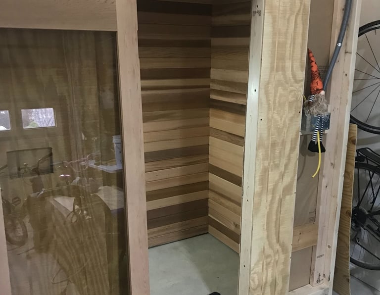 In 2021, after moving around quite frequently in my previous vocations and settling down for a while, I decided it was finally time to embrace my Yooperness and build my own sauna. I researched for over a year, reading about sauna history and methods of construction, and watching how to build-your-own sauna videos on Youtube. In the summer of 2022, I pulled the trigger and ordered a 6’x4’x7' Canadian red cedar interior kit which included knotless cedar for the interior walls and benches, a foil vapor barrier, electric stove, light, and a control panel.